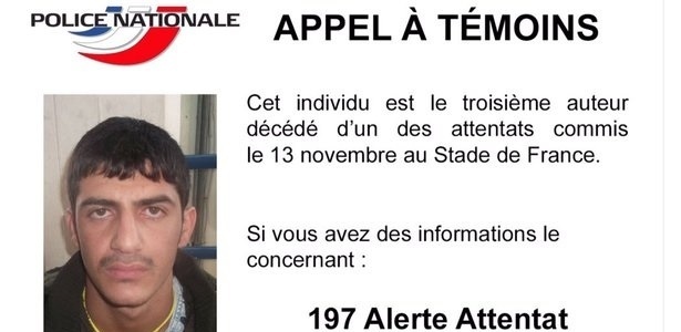 "Este indivíduo é o terceiro autor morto de um dos atentados cometidos em 13 de novembro no Stade de France", diz a descrição da foto postada na conta oficial da polícia no Twitter.